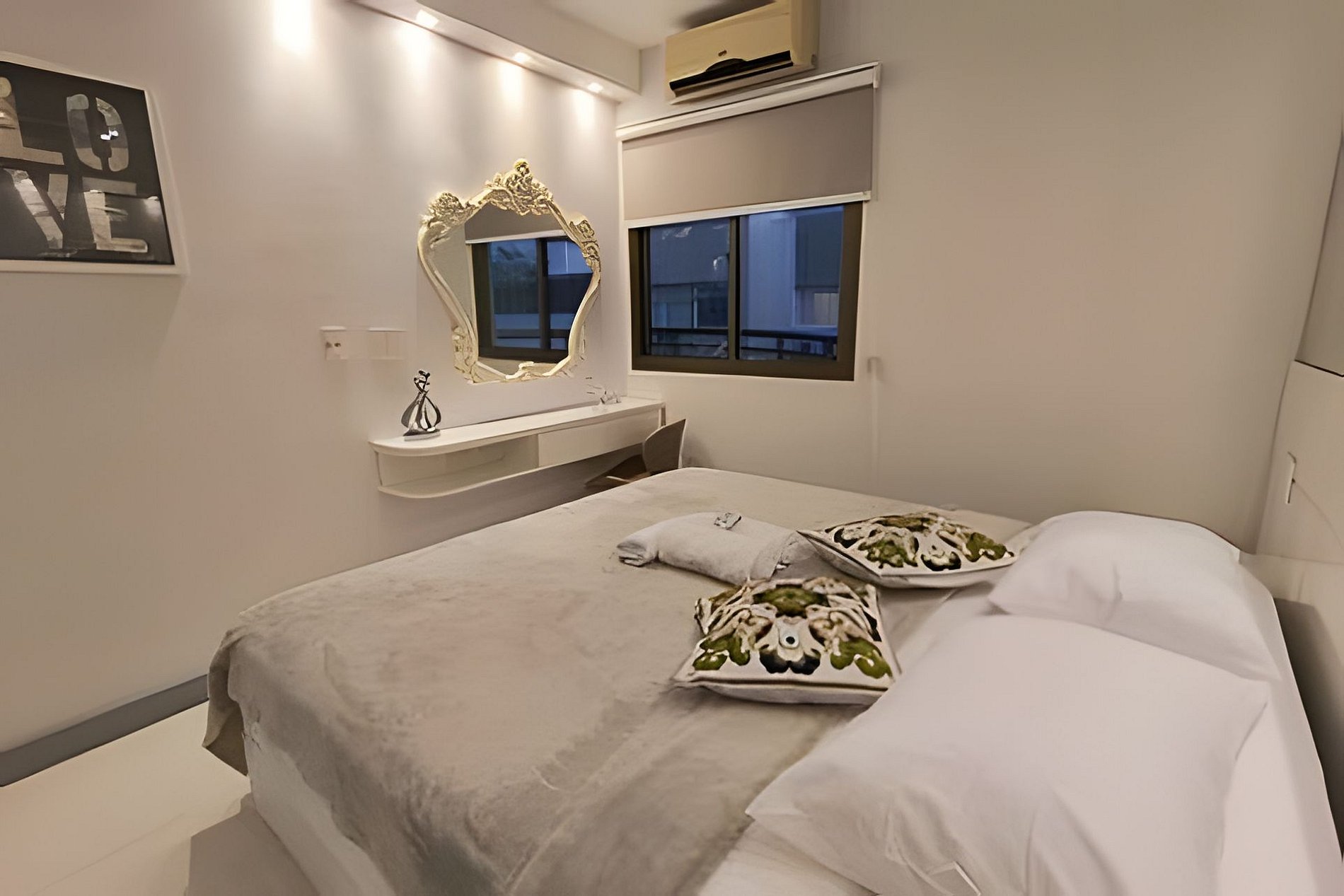 Arejado e com boa iluminação, possui 01 quarto com ar-condicionado split, cama king size, armário e cofre.