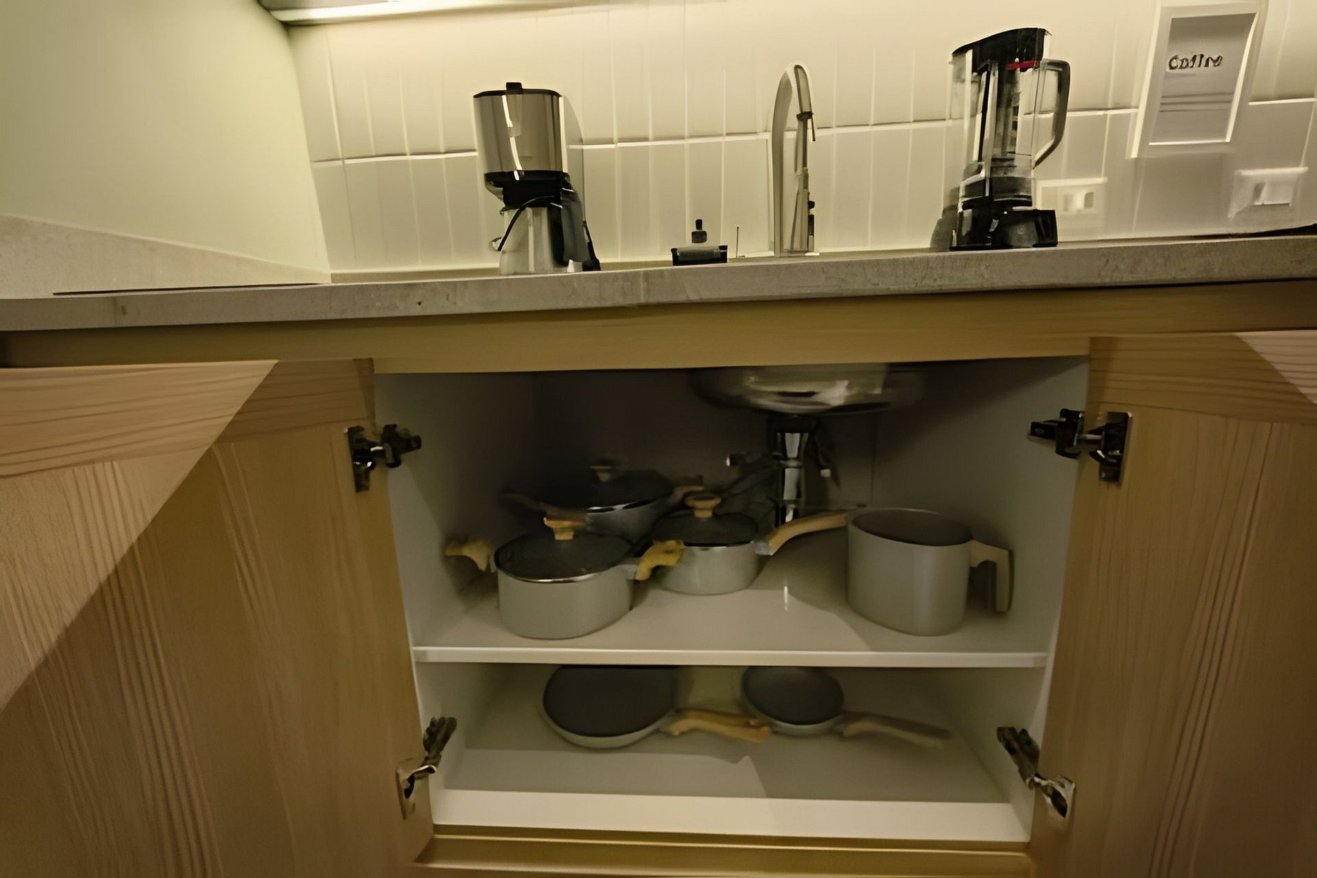 Cozinha bem equipada, com utensílios domésticos para o preparo de refeições e filtro de água.