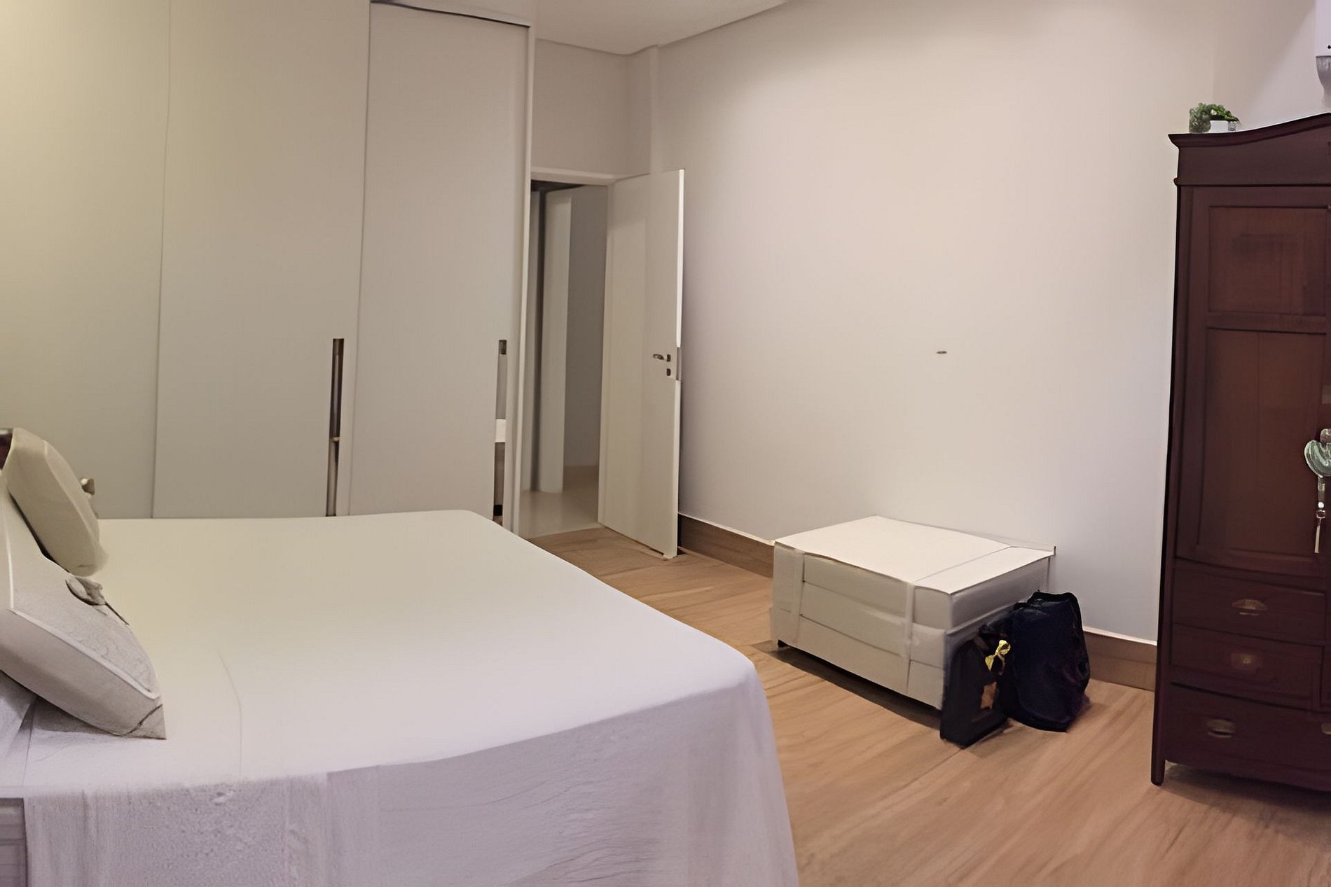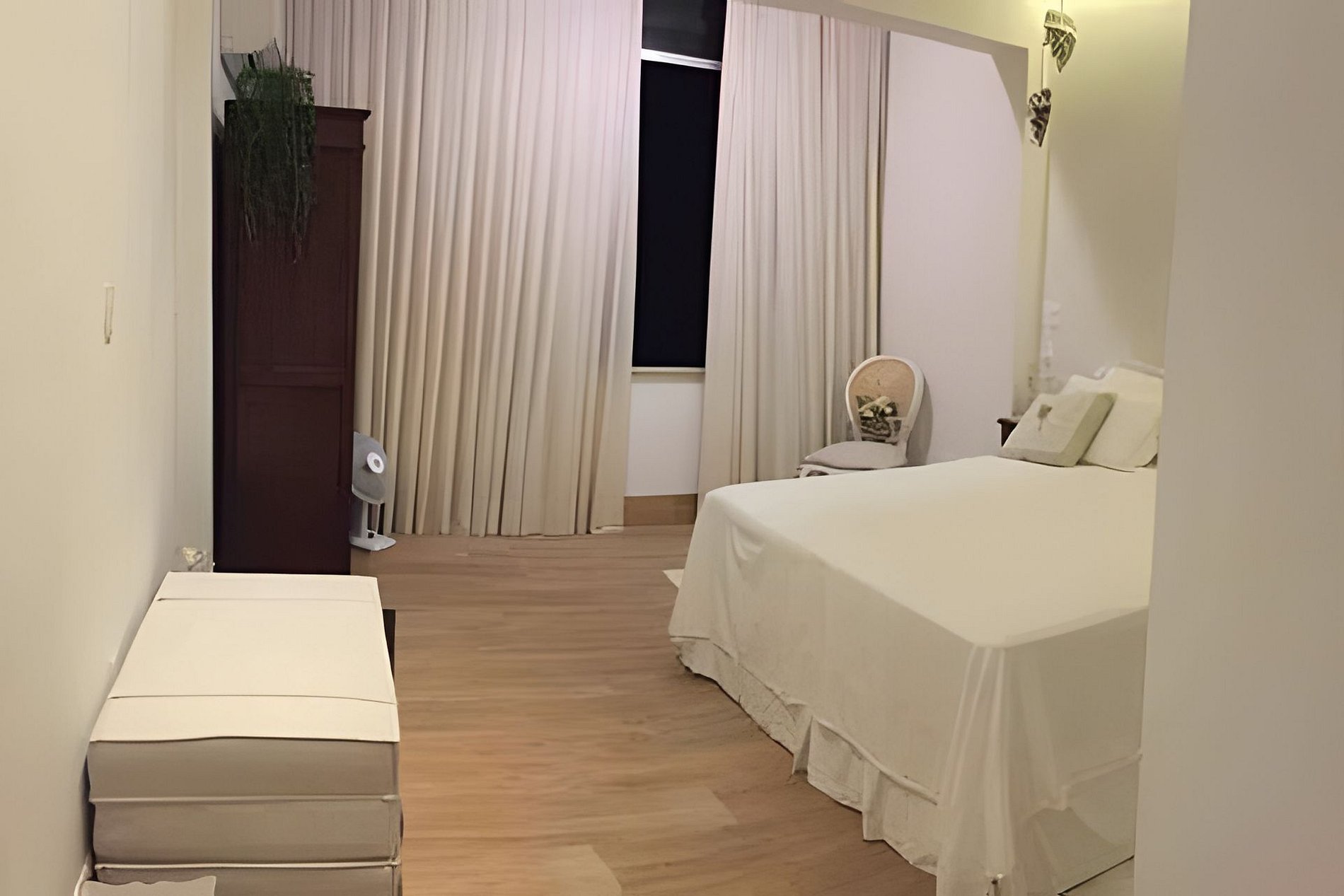 Apartamento de 02 quartos, ambos com ar-condicionado, sendo 1 com cama queen-size e o outro, com 2 camas de solteiro. 01 TV no quarto de casal.