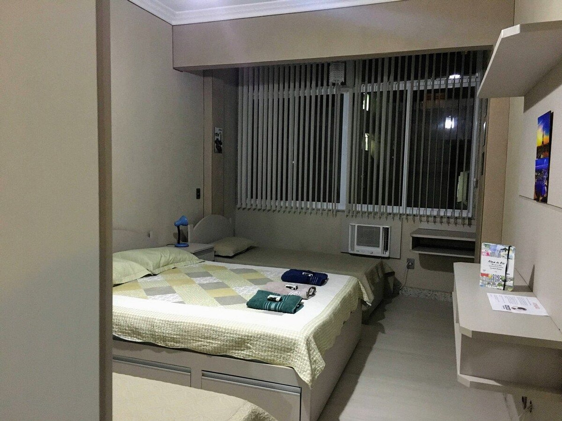 01 suíte com 01 cama de casal e 02 camas de solteiro e ar-condicionado.