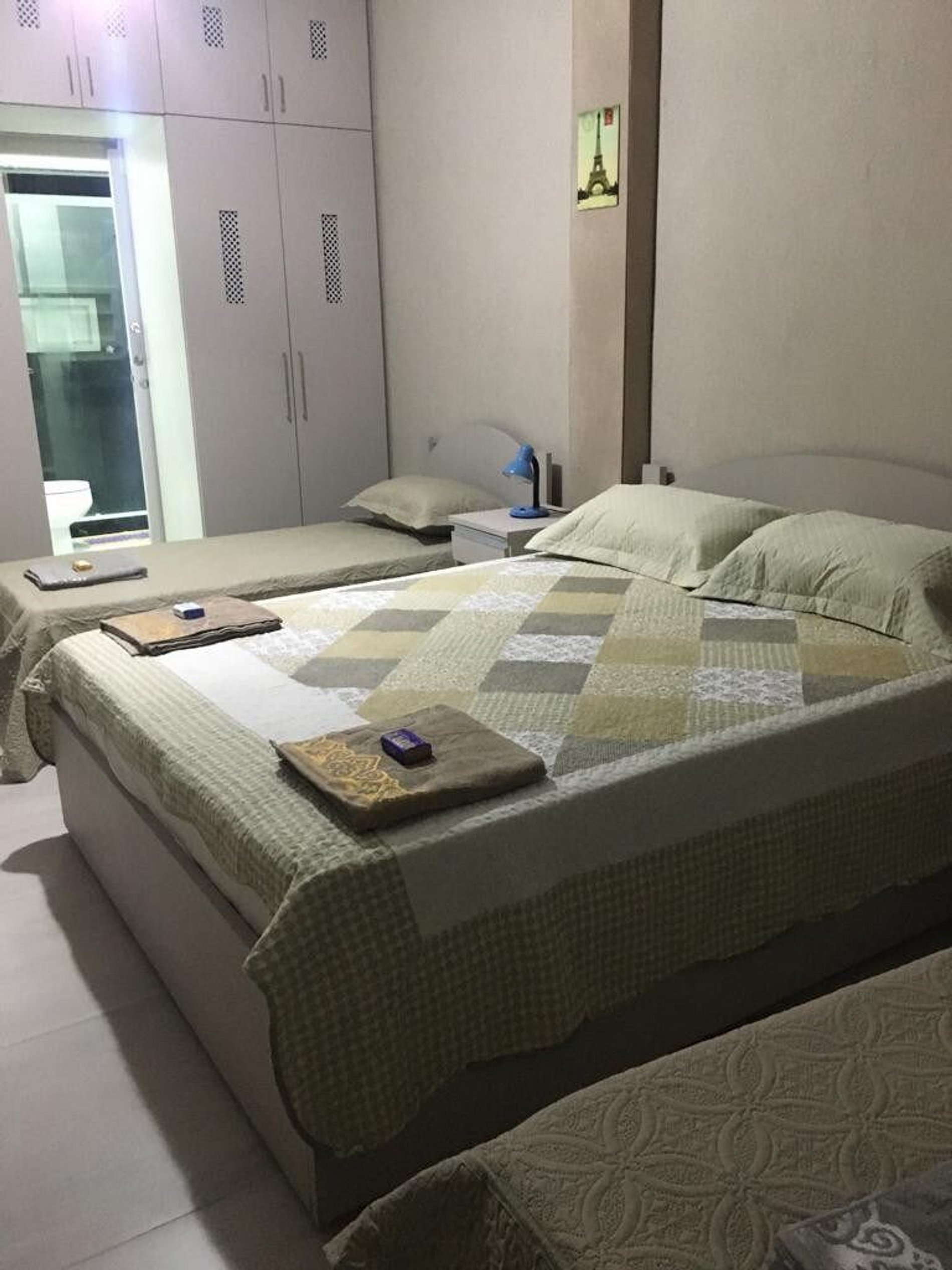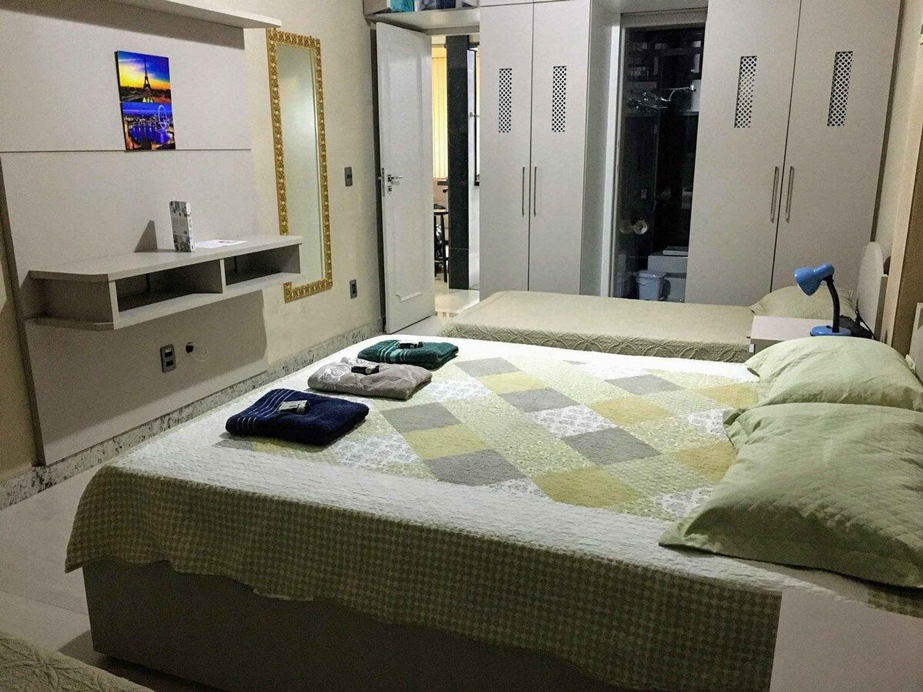 01 suíte com 01 cama de casal e 02 camas de solteiro e ar-condicionado.