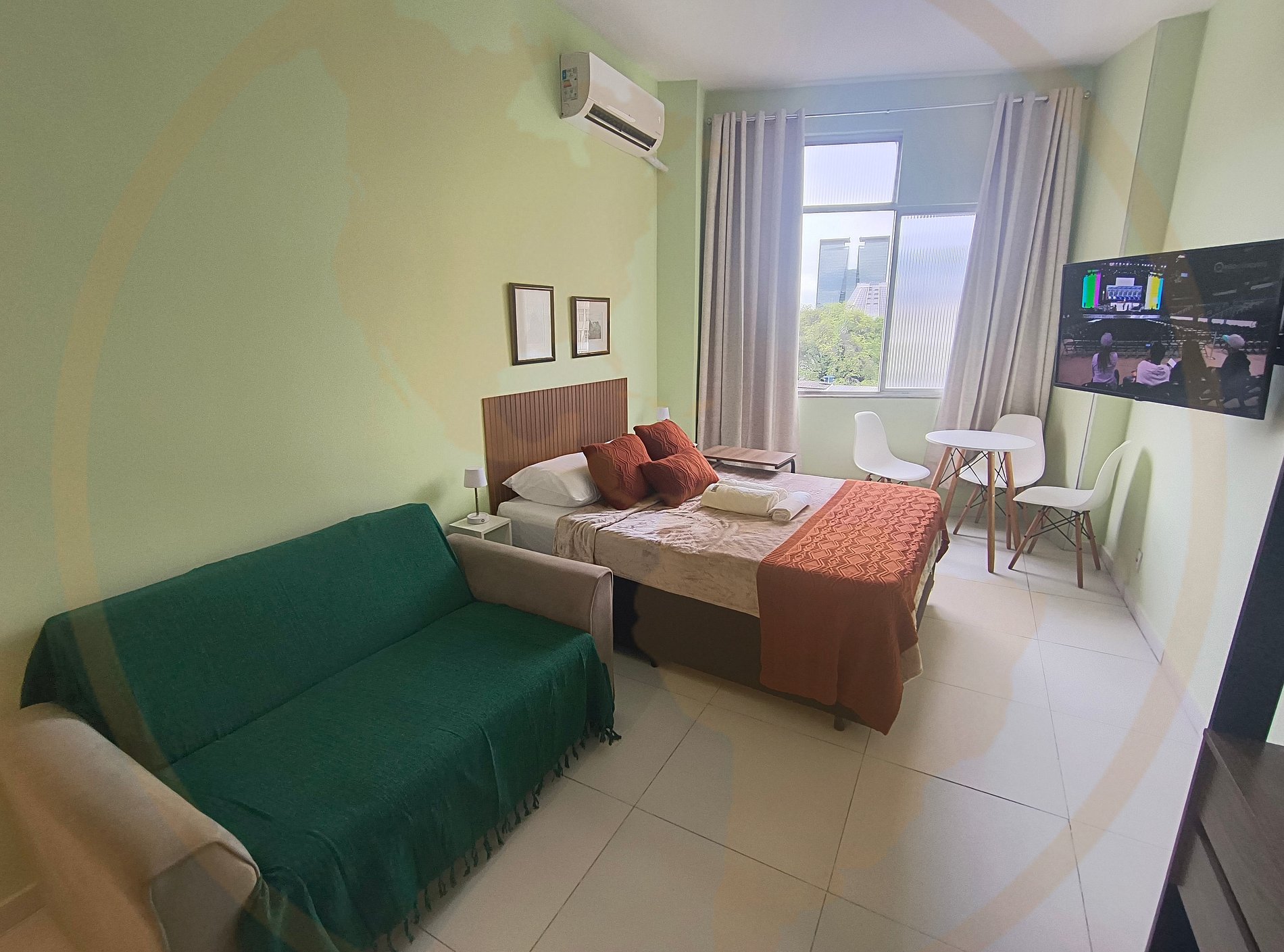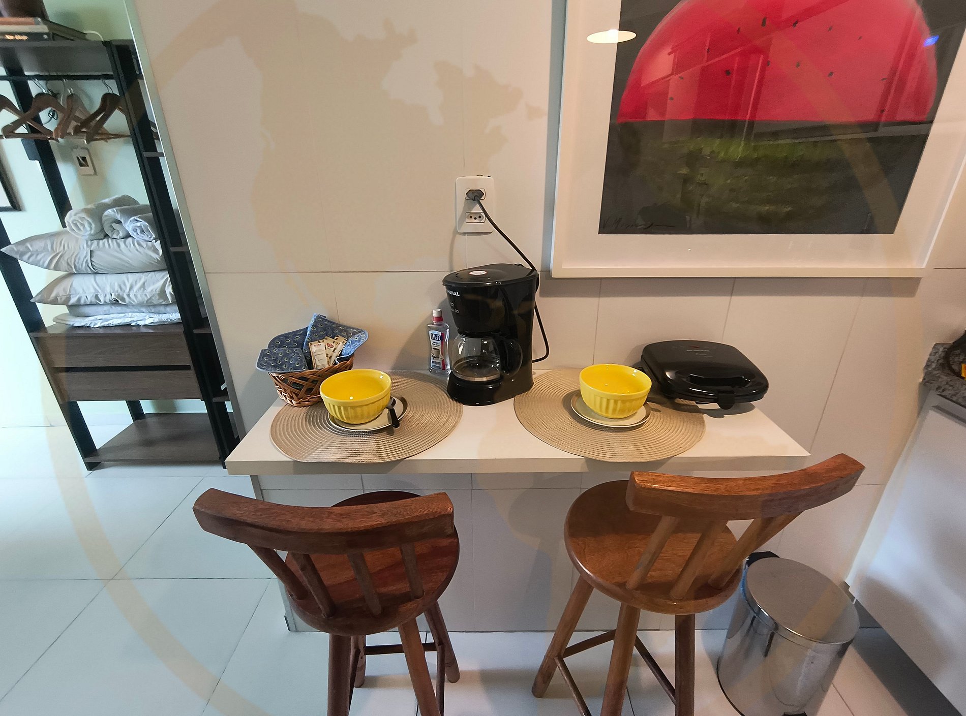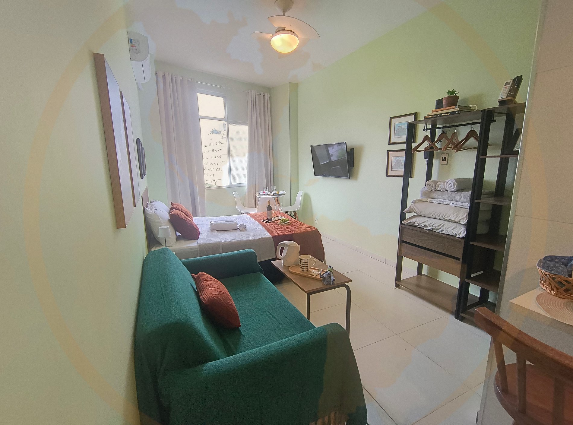 O estúdio oferece todo o conforto necessário para sua estadia, com cozinha equipada e ambiente planejado para 4 hóspedes.