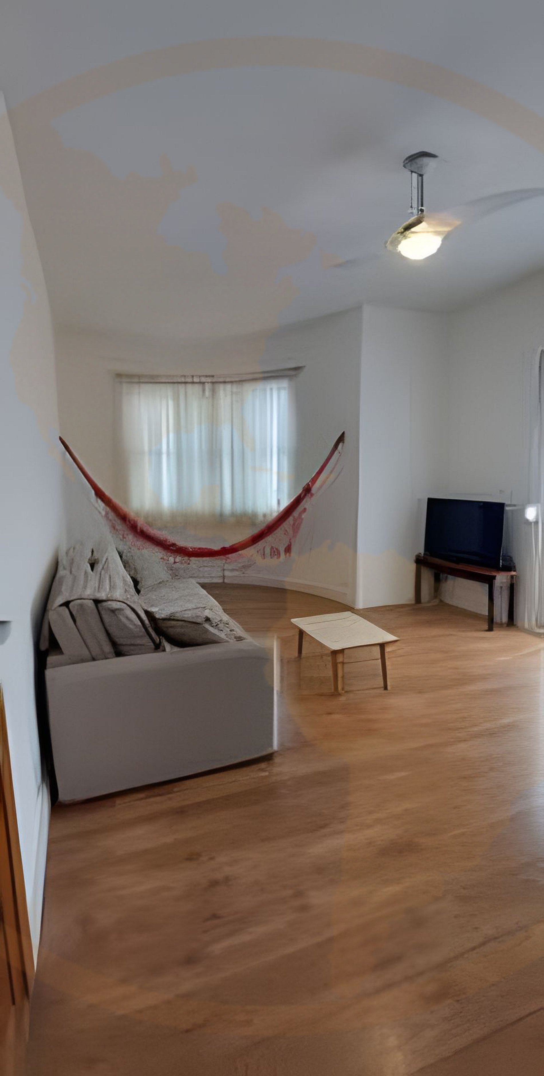 A área interna é ampla, arejada e muito aconchegante. A sala de estar espaçosa possui um sofá grande, TV e uma deliciosa rede para relaxar.