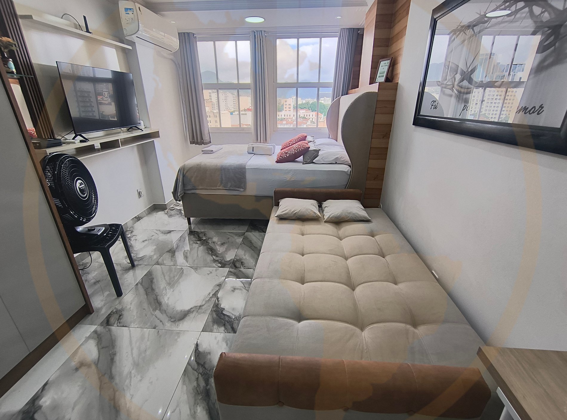 No coração do Centro do Rio,um charmoso e confortável estúdio,reformadíssimo,para viagens a lazer ou a negócios. Comodidades,praticidade e conforto com bom custo e benefícios.Situado junto à Praça Tiradentes,em frente ao VLT,que leva a pontos turísticos como AquaRio,Museu do Amanhã,Maracanã,Mural das Etnias.A 700m do metrô Estação Carioca,que leva às Praias de Copacabana,Flamengo, Ipanema e Barra da Tijuca. Acomoda 4 pessoas,cama queen-size,sofá-cama c/2 lugares,smart TV,ar-condicionado e WI-FI.