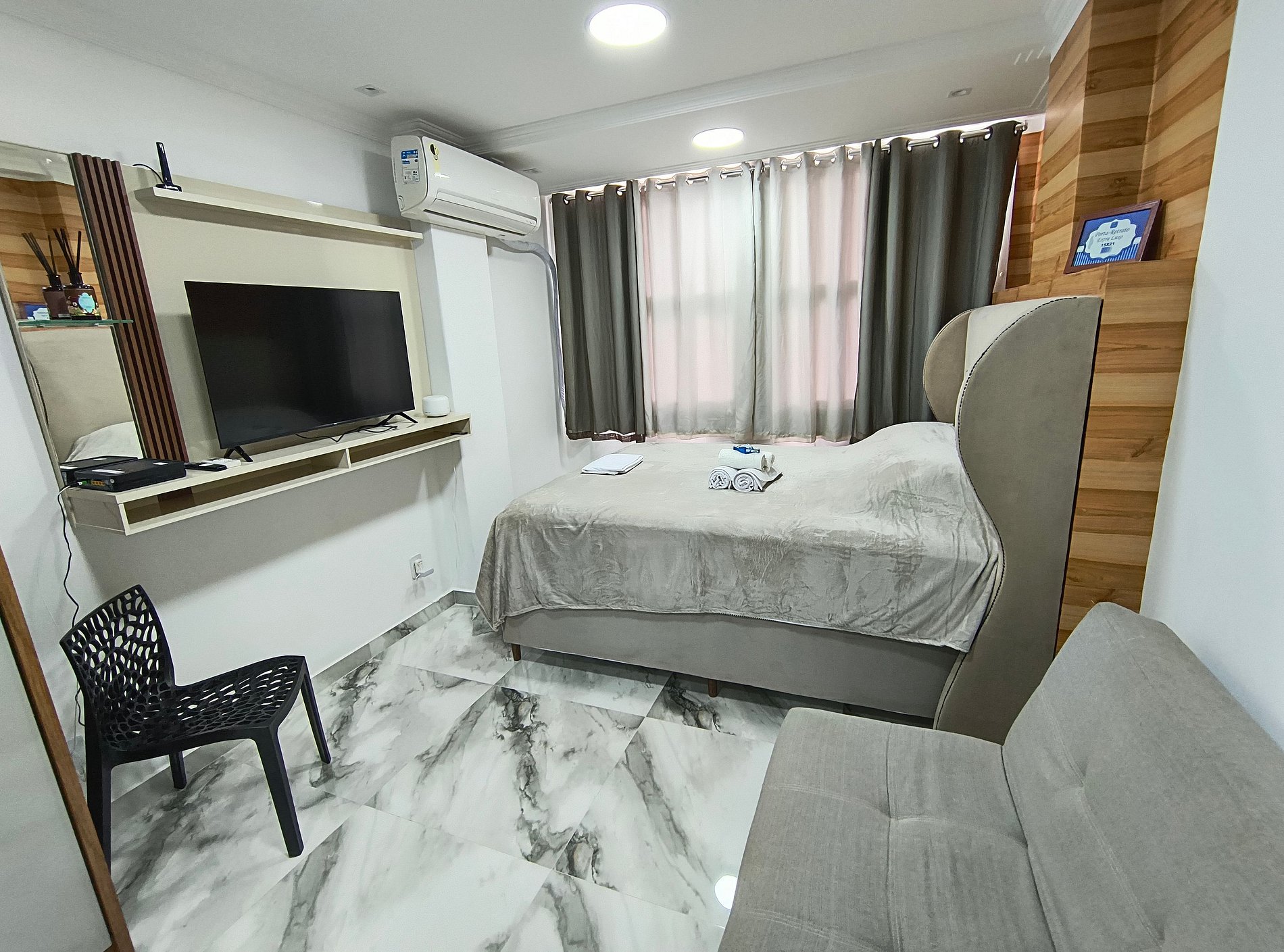 No coração do Centro do Rio,um charmoso e confortável estúdio,reformadíssimo,para viagens a lazer ou a negócios. Comodidades,praticidade e conforto com bom custo e benefícios.Situado junto à Praça Tiradentes,em frente ao VLT,que leva a pontos turísticos como AquaRio,Museu do Amanhã,Maracanã,Mural das Etnias.A 700m do metrô Estação Carioca,que leva às Praias de Copacabana,Flamengo, Ipanema e Barra da Tijuca. Acomoda 4 pessoas,cama queen-size,sofá-cama c/2 lugares,smart TV,ar-condicionado e WI-FI.