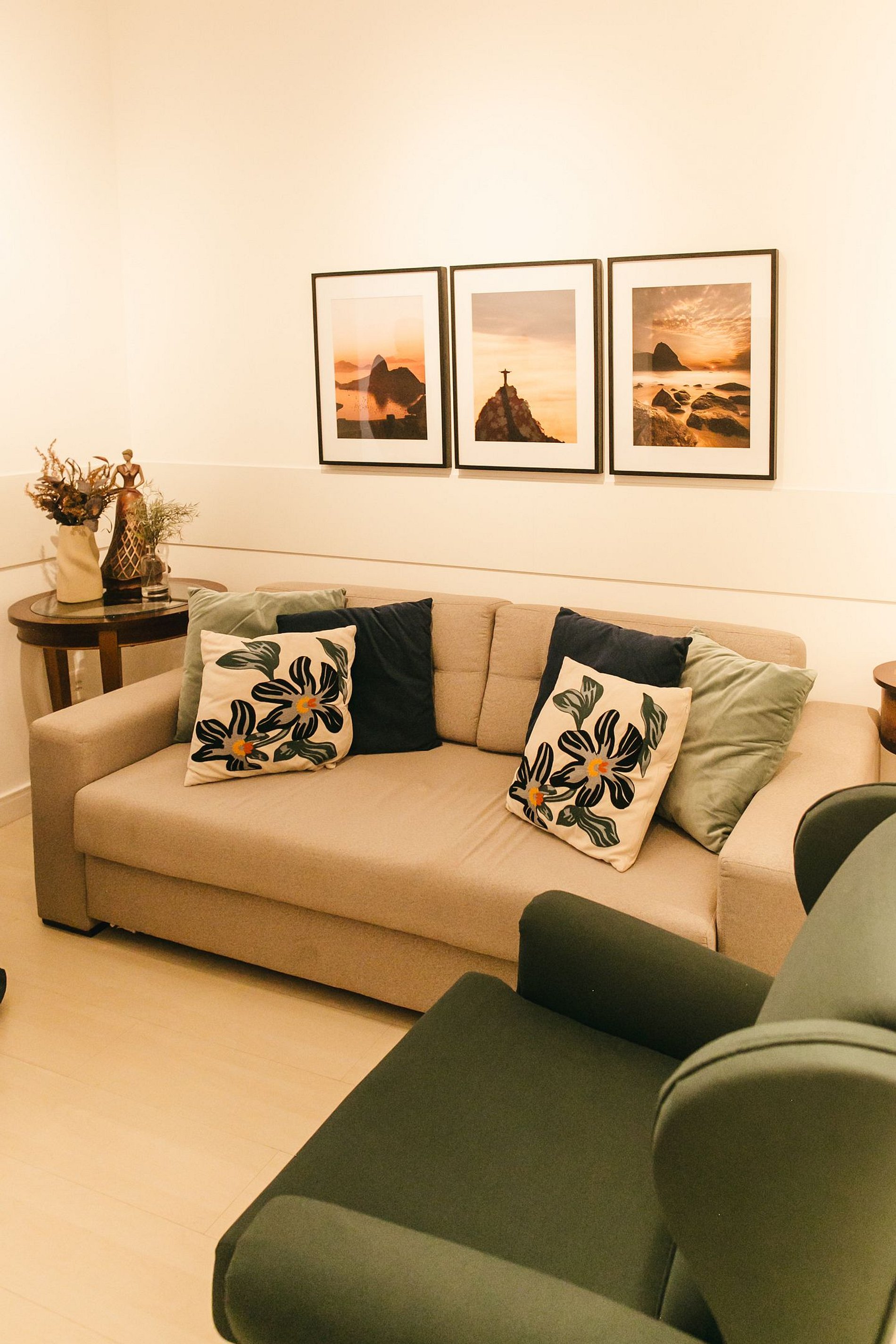 Área de estar com sofá/cadeira