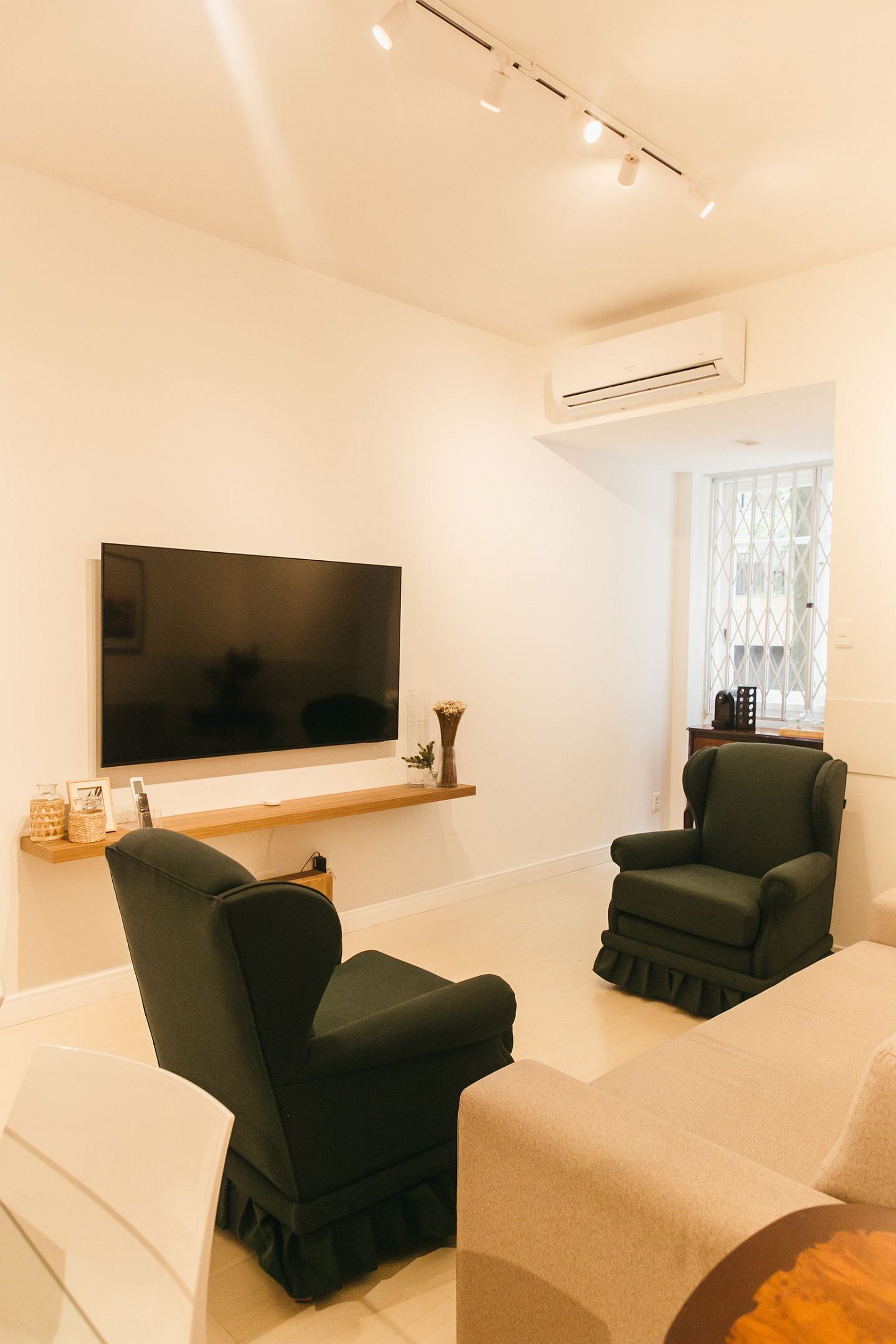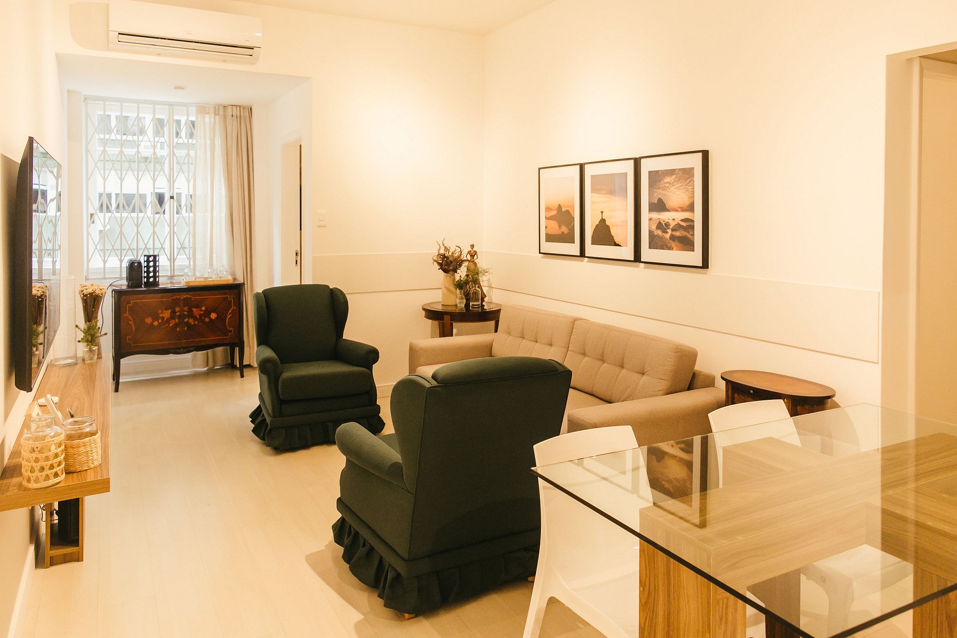 • Clima Perfeito: Ar-condicionado nos dois quartos e na sala para máximo conforto em todas as estações.