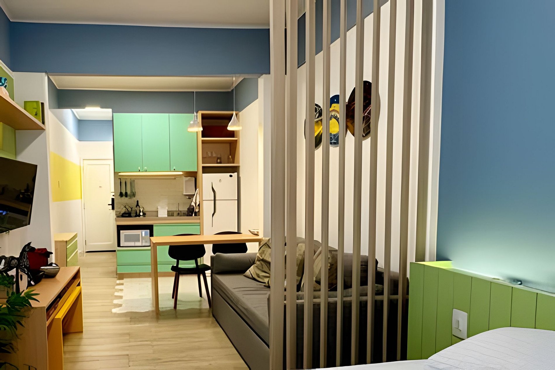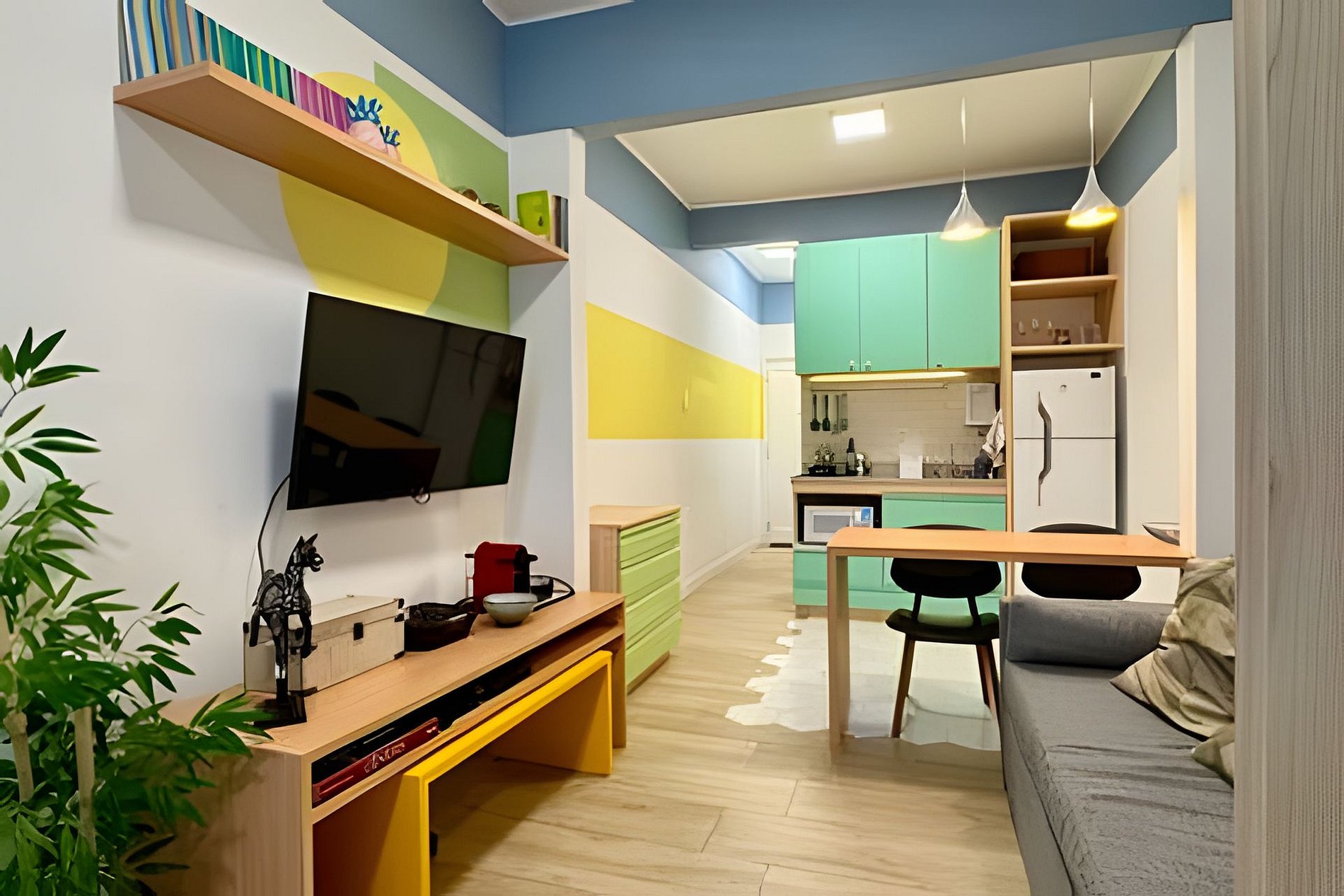 O apartamento é um loft integrado moderno e funcional. Decorado com muito amor nas cores do Brasil, com objetos que trouxe de viagens e diversos livros que eu adoro! Montei esse apartamento para ser um pequeno oásis no centro de Copacabana.