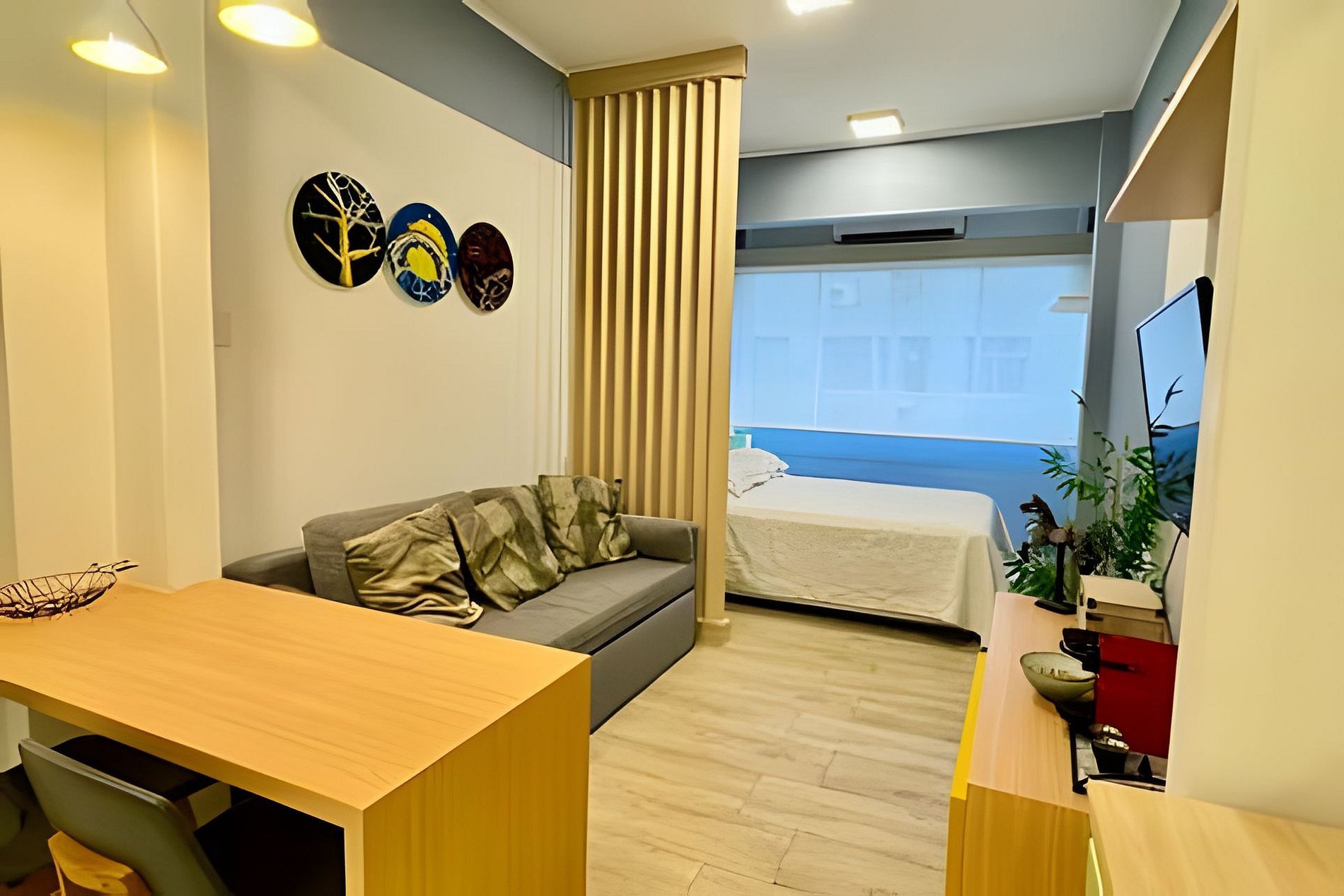 Studio moderno e bem equipado no coração de Copacabana. Próximo à praia, mercados, lojas, bares, restaurantes e metrô. Internet de alta velocidade, ideal para nômades digitais. Descanse na cama queen com colchão premium, relaxe no sofá cama para casal e prepare suas refeições na cozinha americana totalmente equipada. A janela ampla abre para uma rua arborizada e silenciosa. Prédio seguro com porteiro 24h. A 5 minutos a pé da praia e 4 minutos da estação de metrô Siqueira Campos.
