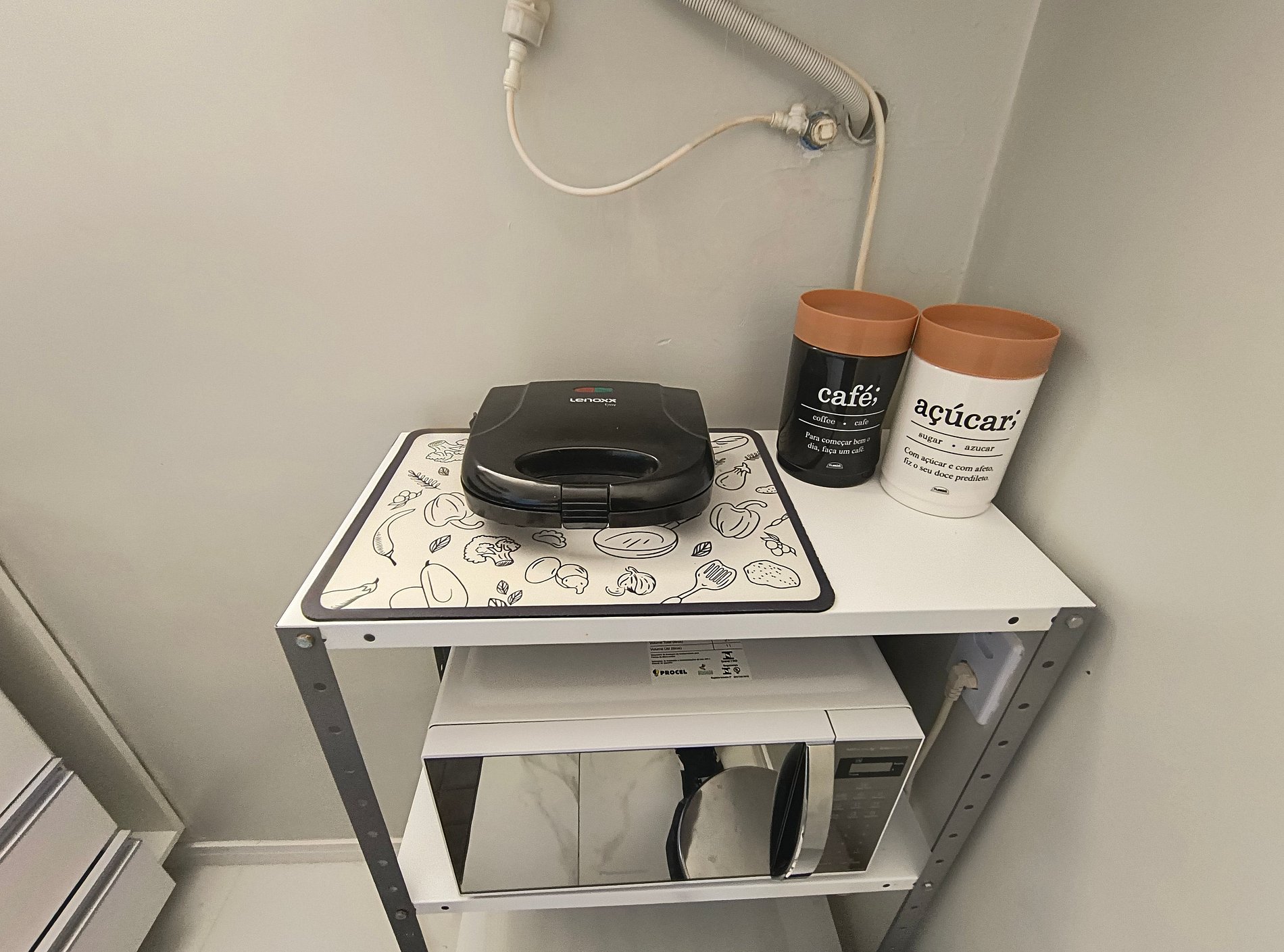 Recomendamos retirar os sapatos no hall de entrada do estúdio para manter o ambiente limpo e confortável; Sugerimos consultar os manuais de instruções dos eletrodomésticos antes de utilizá-los, como o cooktop e a máquina de lavar roupas portátil. Os impressos estão disponíveis na cozinha!