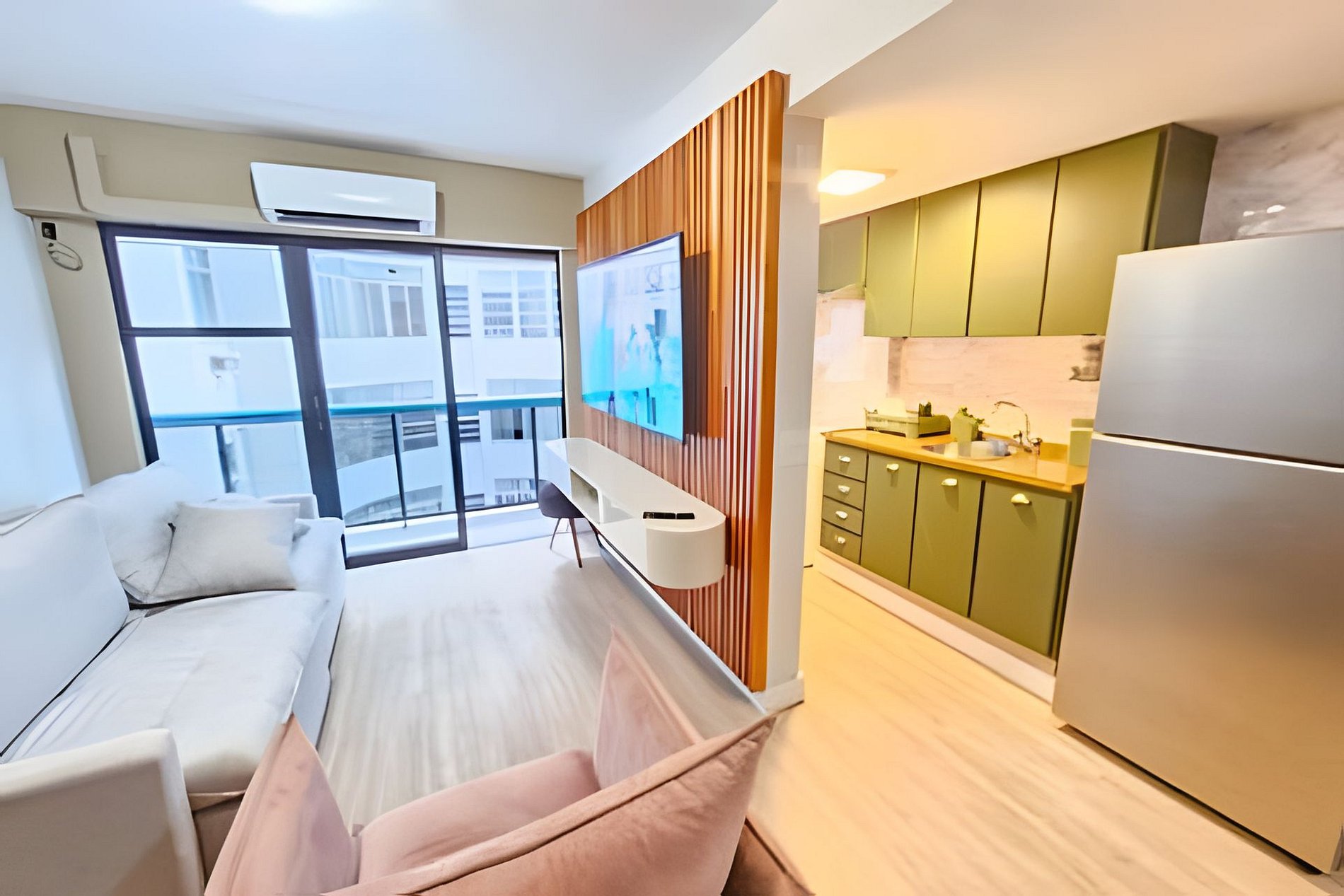 Apartamento recém-reformado,moderno,ponto nobre de Copacabana(Posto 3),a poucos passos da praia,metrô,restaurantes,bares,mercados,lojas e farmácias. Possui 2 quartos(1 suíte),2 banheiros,cozinha completa,ar-condicionado em todos os cômodos,máquina de lavar e secar roupas e WI-FI. Sala com sofá-cama confortável. Prédio seguro,com portaria 24h,01 vaga de garagem gratuita,piscina,academia, sauna e área de lazer. Relaxe na piscina, aproveite a sauna, divirta-se no playground e conte com um mercadinho interno para suas necessidades básicas. Para sua comodidade, dispomos de 01 vaga de garagem gatuita. Prédio seguro com portaria 24h e monitoramento por câmeras 24h. Além disso, a localização é estratégica, estando próximo do metrô e de uma variedade de restaurantes, cafés charmosos, bares, sorveterias, farmácias, boutiques, salões de beleza, bancos e um vasto comércio em geral, facilitando seu dia a dia.