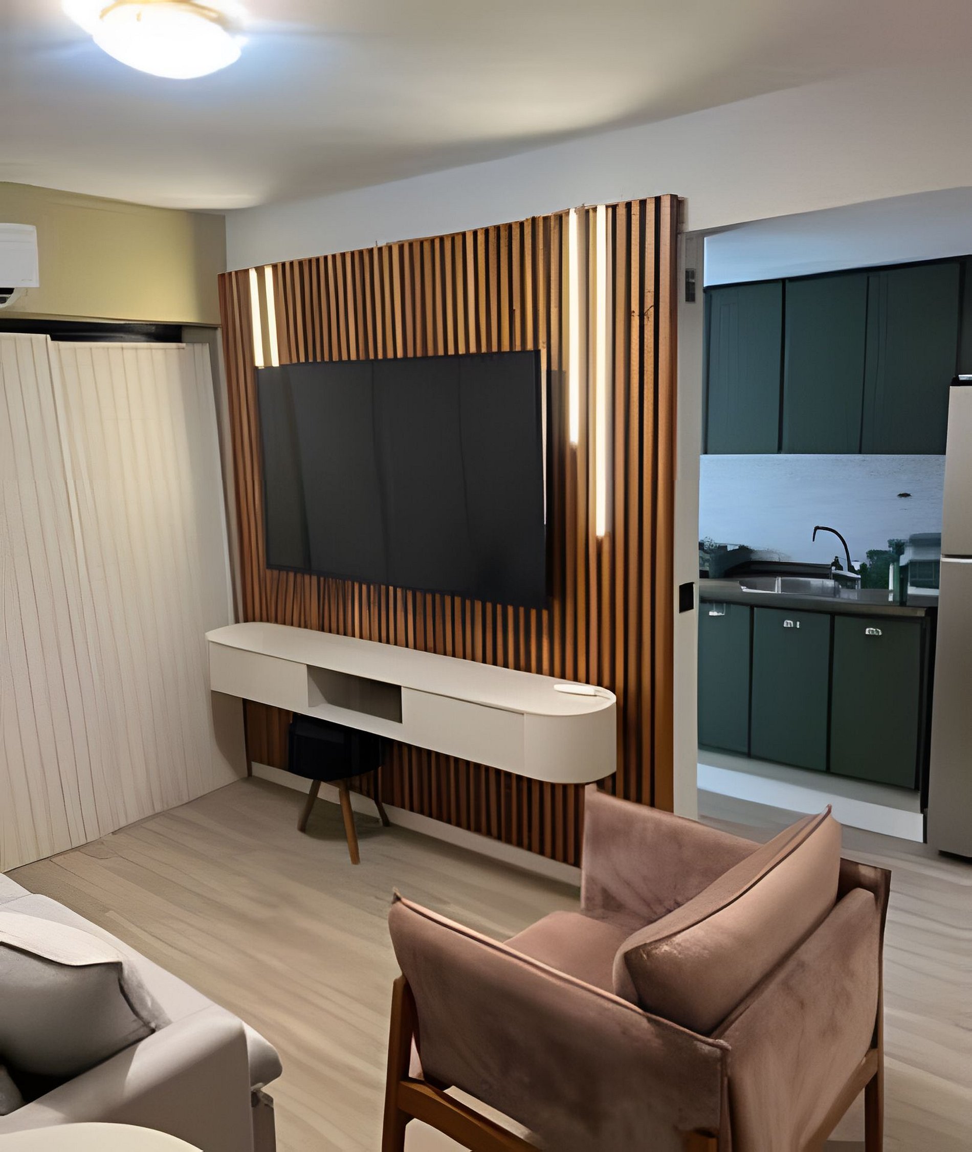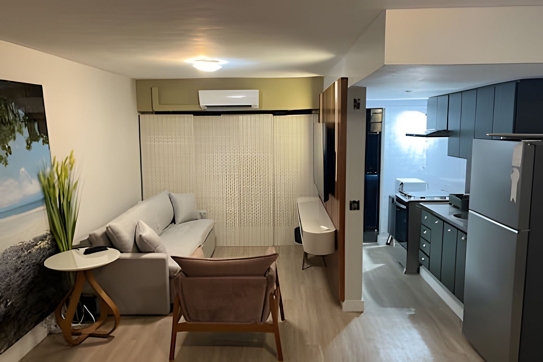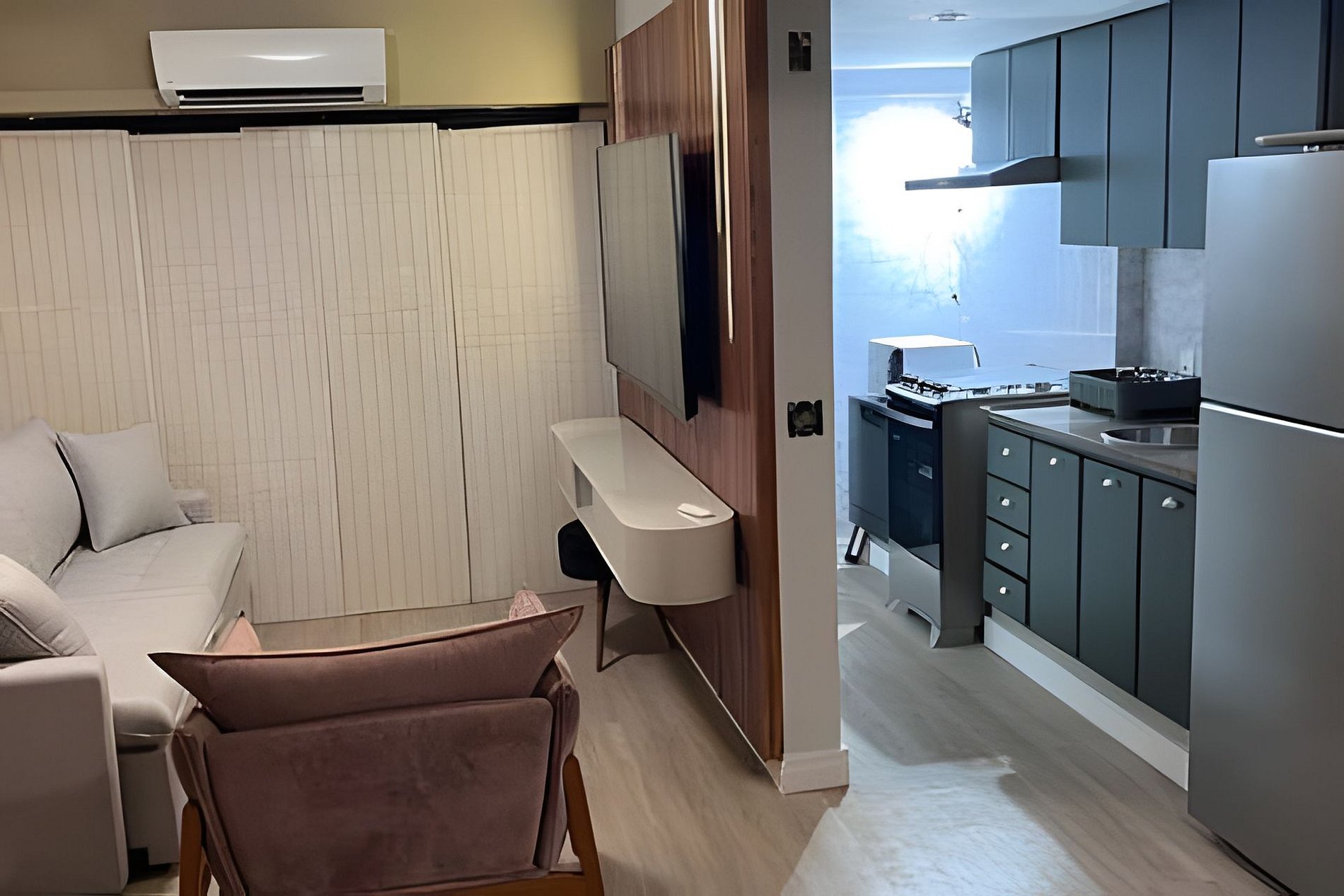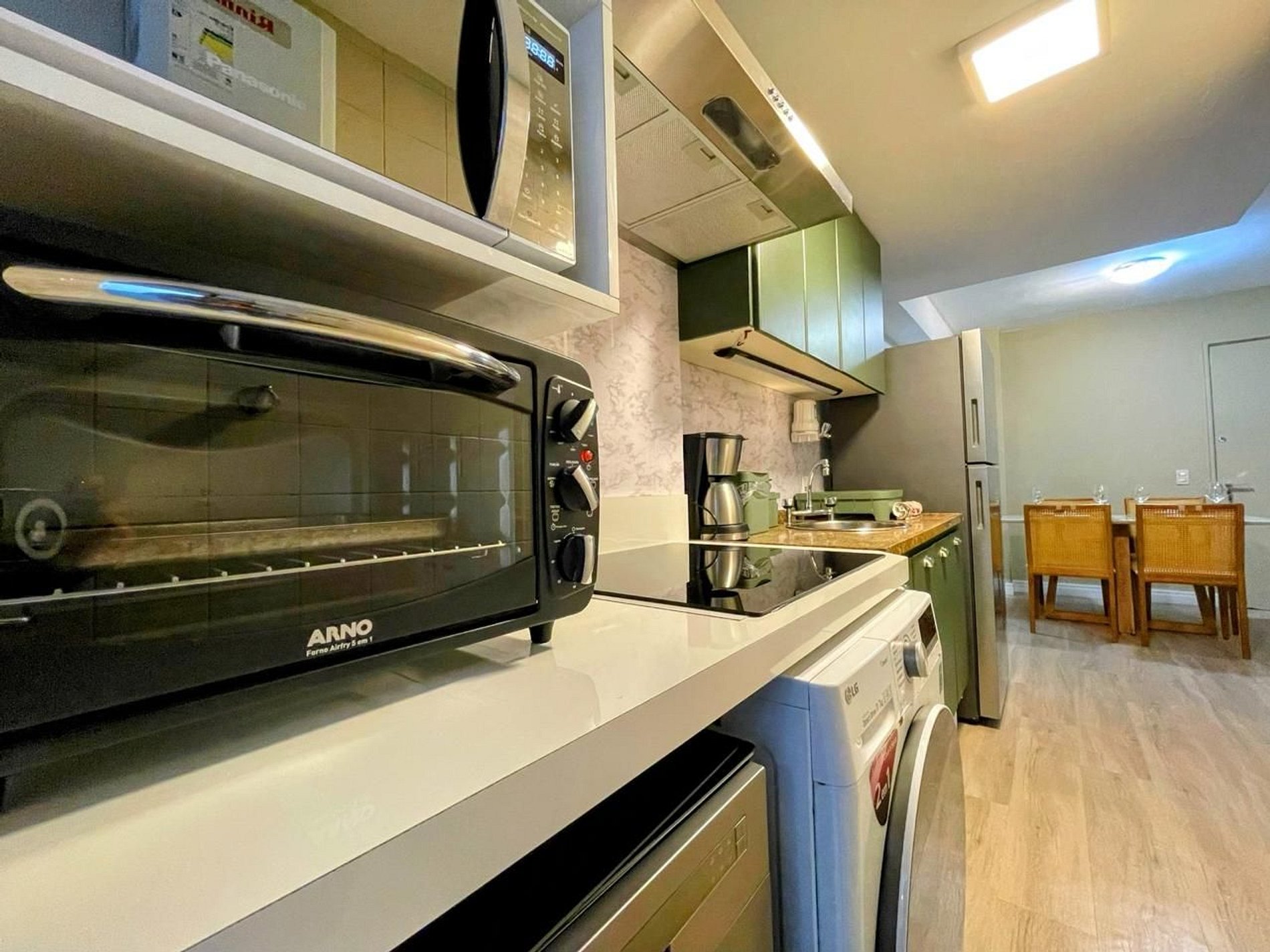 Possui 2 quartos(1 suíte),2 banheiros,cozinha completa,ar-condicionado em todos os cômodos,máquina de lavar e secar roupas e WI-FI.